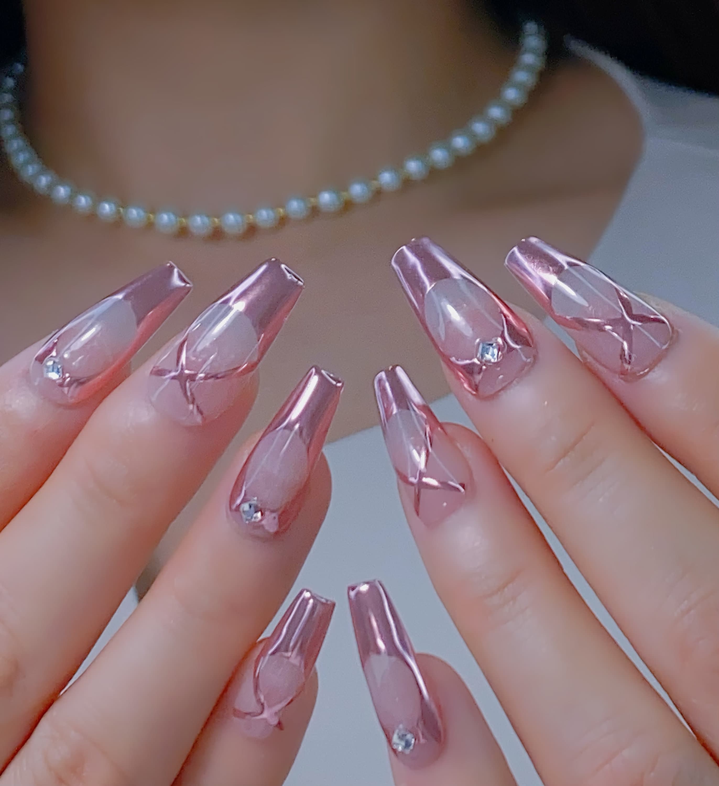 Luxury Rose Gold Ballet Shoes Gorgeous Nails Chrome Nails Faux