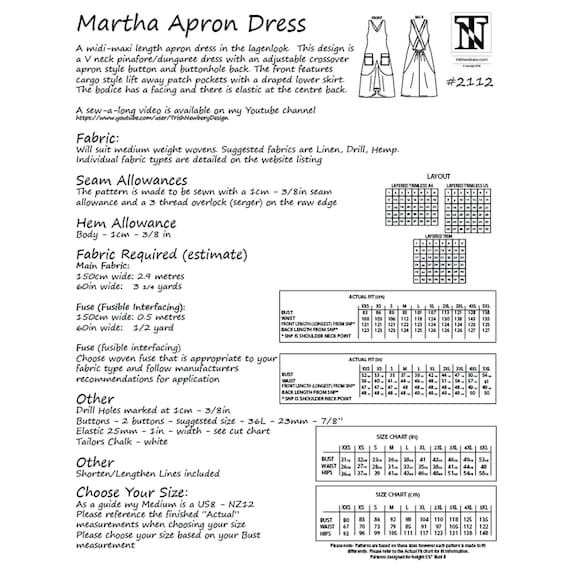 Trish Newbery Design Martha Apron Dress XXS 5XL PDF Sewing Pattern